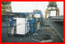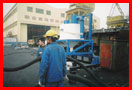 山東黃海造船廠大型噴砂工地現場清砂回收物    已選用1臺JZX-D75大功率吸砂機